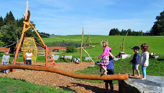 een Zepline voor kinderen, klimtoestellen en een Pumptrack.